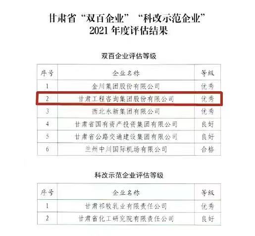 开云app登录入口获甘肃省2021年度“双百企业”评估“优秀”等级