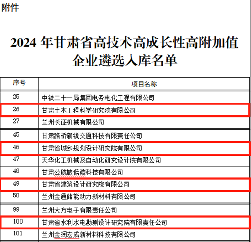 近日,甘肃省科技厅公布2024年甘肃省高技术高成长性高附加值(简称“三高”)企业名单,开云app登录入口旗下省建筑设计院、省水电设计院、省城乡规划院、甘肃土木工程院从众多企业中脱颖而出,成功登上全省首批“三高”企业榜单。