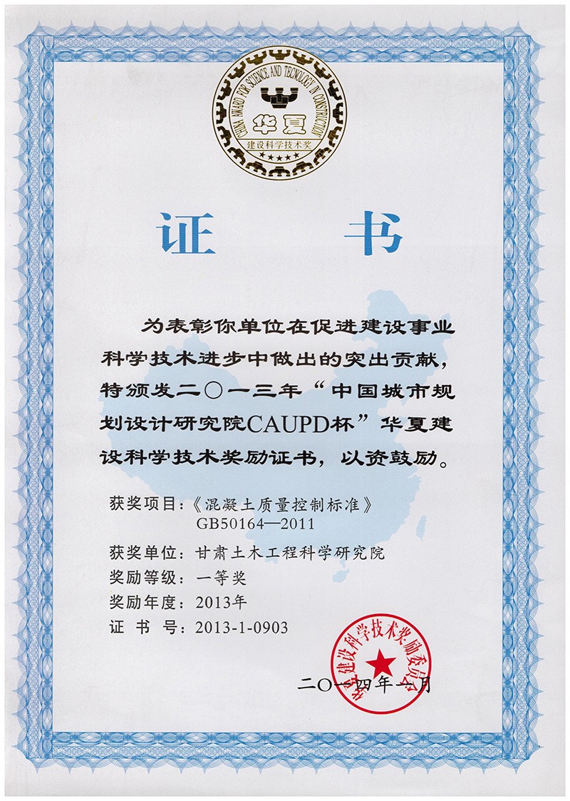二0一三年“中国城市规划设计研究院CAUPD杯”华夏建设科学技术奖